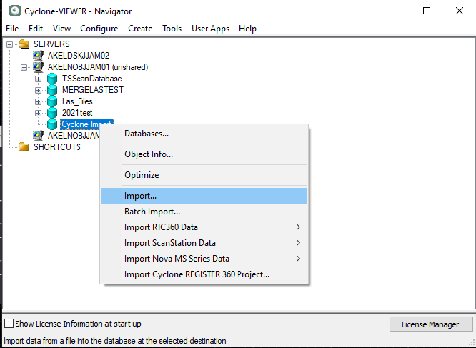 This Tutorial walks you through the steps of creating a Cyclone database from a non-Leica Pointcloud source.