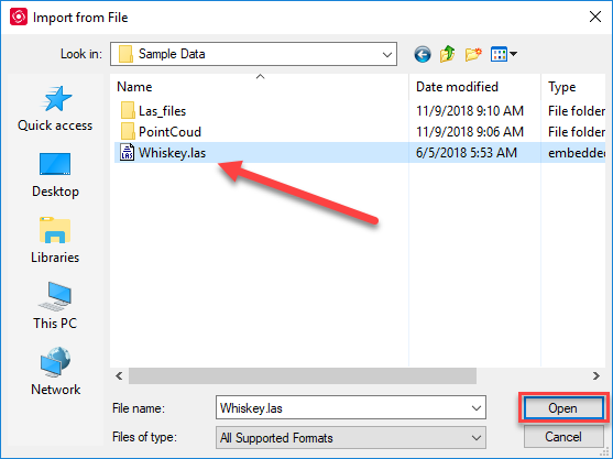Browse to your .las file (many supported formats) and Open it.