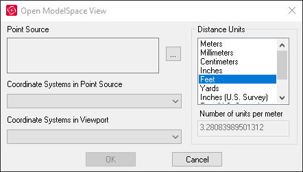 Return to MicroSurvey. You can continue working with the open "Import Modelspace" dialog or, if you've closed it, launch eith "Import Cyclone" or "Import Cyclone Legacy" from the MsPointcloud ribbon: