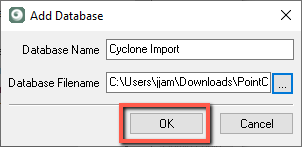Pick the "..." button and browse to the folder you would like to create your Cyclone database. We recommend creating it in the same location as your original scan file and CAD files for ease of file management in the future.