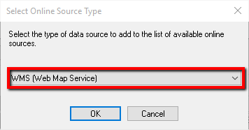 - Select WMS (Web Map Service) as the source type: