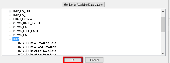 - Select Get List of Available Data Layers: