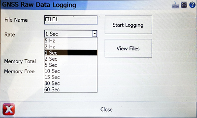 - Pick Close to close the GNSS Raw Data Logging screen.