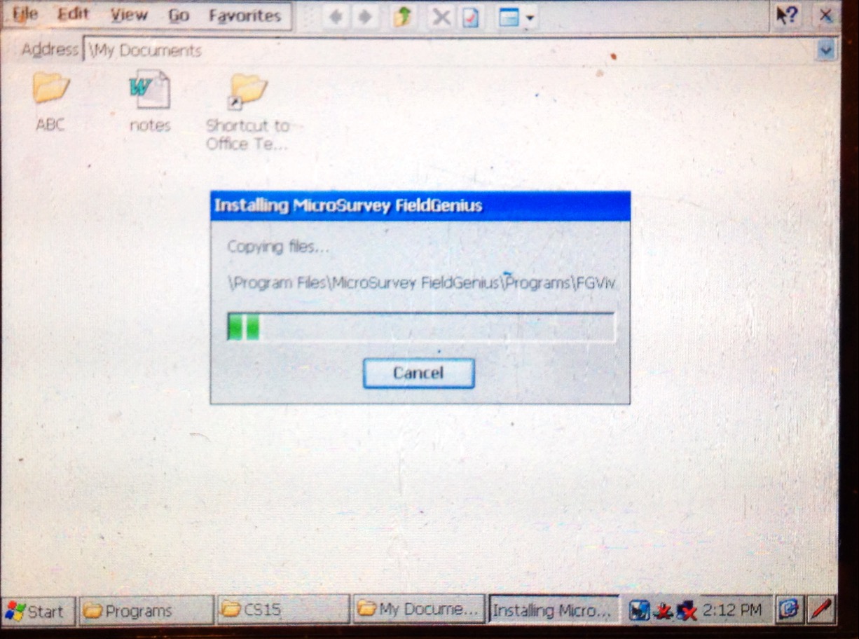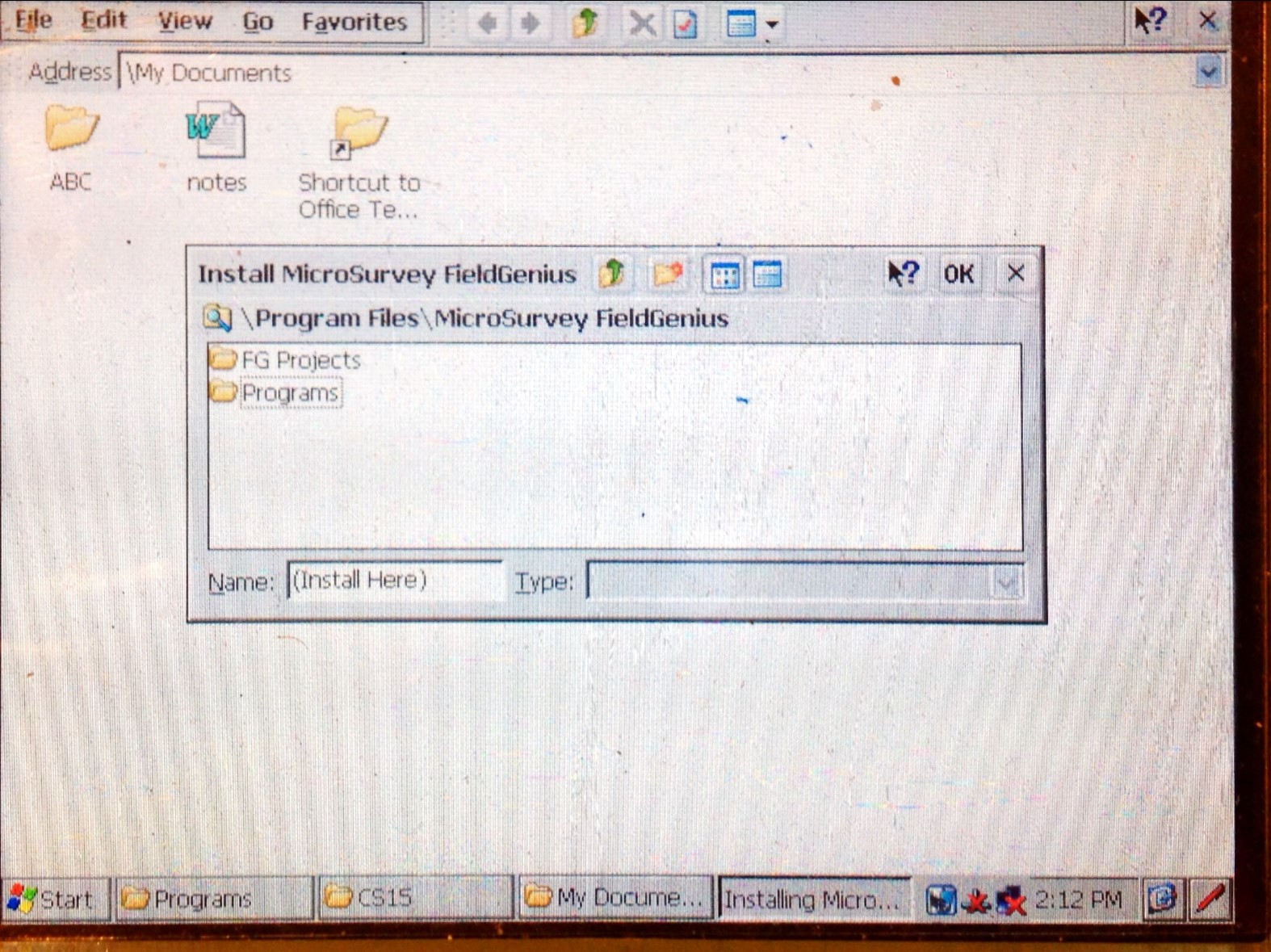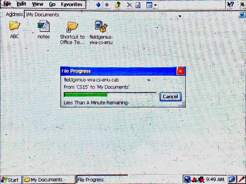 Copy and Paste the Cab file on the hard drive of the data collector. In this example we simply inserted it into My Documents.