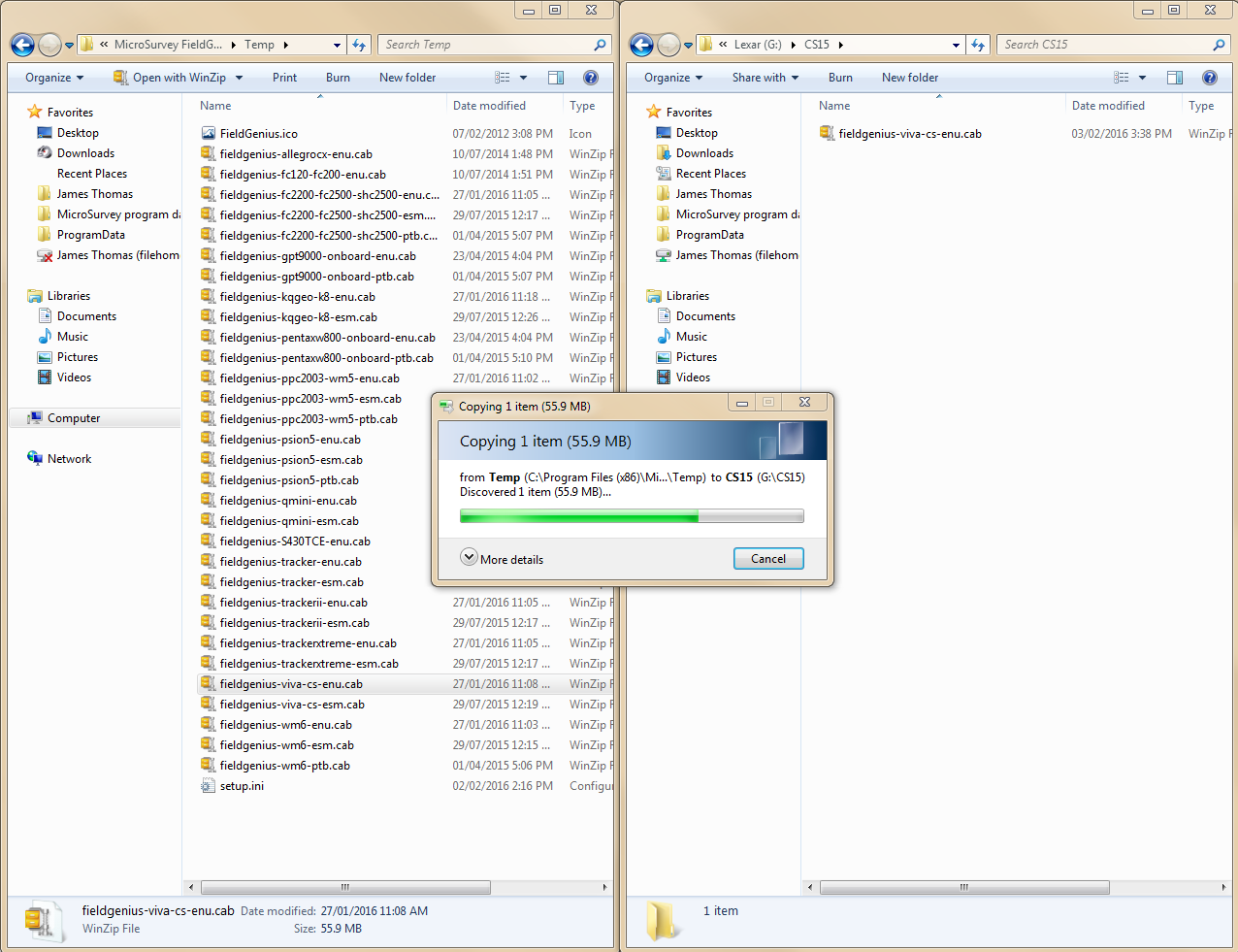 From here, double click the Cab file to run the FieldGenius installer.