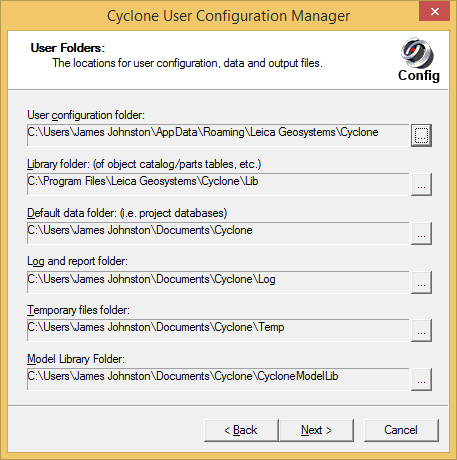 - Run Cyclone User Configuration Manager and check that the Temporary files folder is on the c: drive as it is in this computer:
