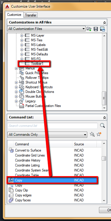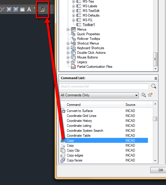 12. The new toolbar will be added to the bottom of the list. Drag and drop commands from the Command List to add them to the new toolbar. Add your toolbar to your workspace by repeating step 3.