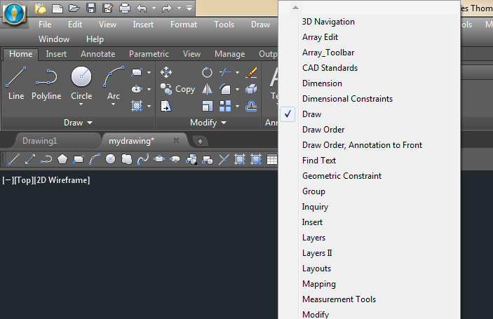 4. You can now expland the Toolbars menu to see that "Draw" has been added.