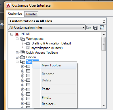 10. You will now see your new workspace listed in the CUI. Create as many diffent custom workspaces as you wish following the steps above.
