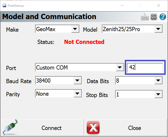 After updating to FieldGenius 8.3 or later some users have reported issues when connecting to their GeoMax devices (such as Zenith 25) via bluetooth when using a Windows 10 tablet. Follow the steps below to configure the Windows Bluetooth and FieldGenius correctly: