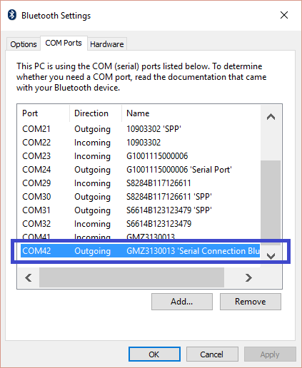 5. Switch to the COM Ports tab then scroll down to find your device's Outgoing COM Port. Take note of the Port number.