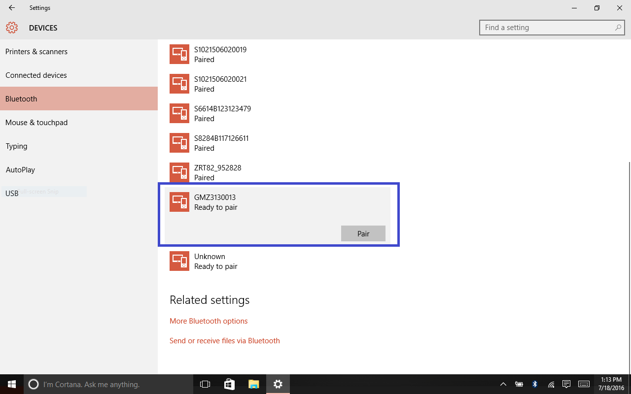 2. Find your device in the bluetooth devices list. Select it and choose "Pair".