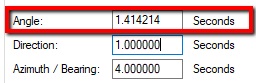 | Angular Accuracy: 2. Compute Angular Std Err from Direction Std Error computed above Angular Std Err= √(Direction²+Direction²) E.g.: (1 FS + 1 BS) with a 1 second instrument: √(1.414"²+1.414"² ) = 2" E.g.: (2 FS + 2 BS) with a 5 second instrument: √(5"²+5"² ) = 7.07" |