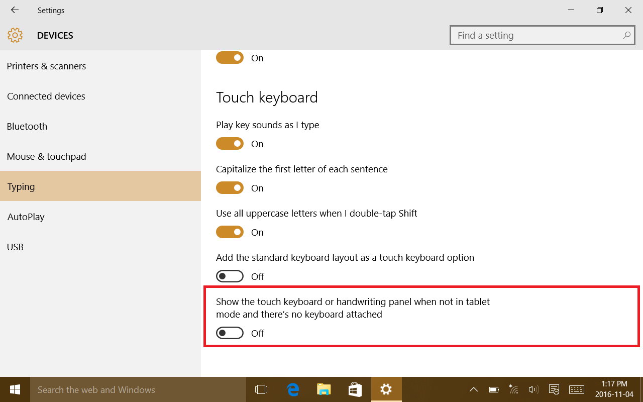 Scroll to the bottom of the page and turn OFF "Show the touch keyboard when not in tablet mode"
