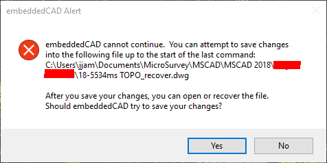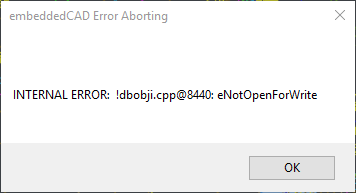 It may be followed by a message that "embeddedCAD Cannot Continue" and the program will then close.
