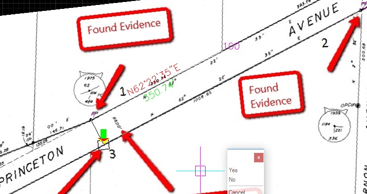 In the example above we can see that Pipe Posts 1 and 2 have been found. The Highways plan tells us the road width is defined as exactly 66 feet.
