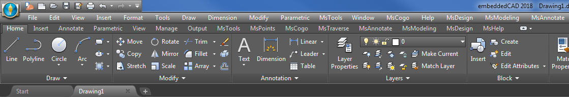 Some users may notice the MSPoints and MSTraverse menus missing when they show their legacy style menu bar in embeddCAD 2018.