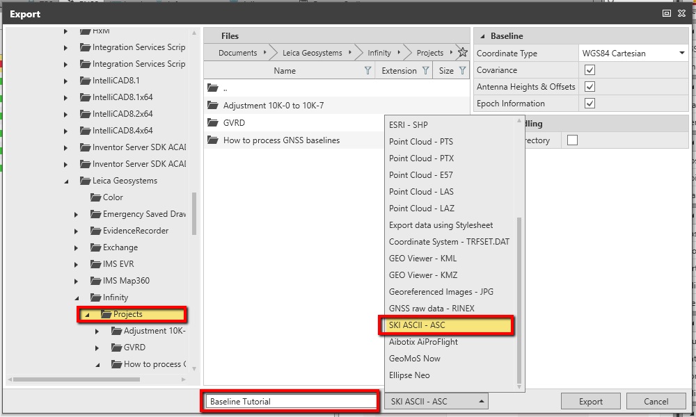 Leica Infinity Release 2.3 includes an option to export baselines to SKI Ascii format so that STAR*NET can be used to perform least squares adjustment.  This feature has been enhanced to use extended precision in the variance/covariance fields to provide more precise weighting information for high precison work.  Please follow the guide below to see how to exchange between the two programs: