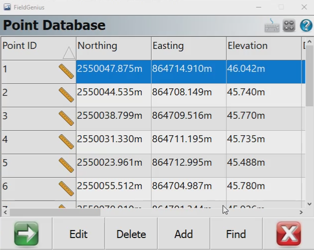 Step 10: Now you can go back to the Point Database and confirm that your coordinates are not listed in the correct system.