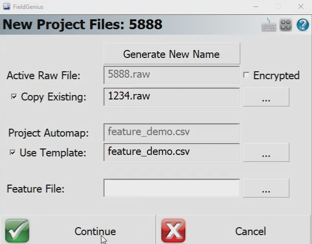 Step 5: From the Project Settings, click Project Files and make sure Automap and Feature File are the same as the original project.