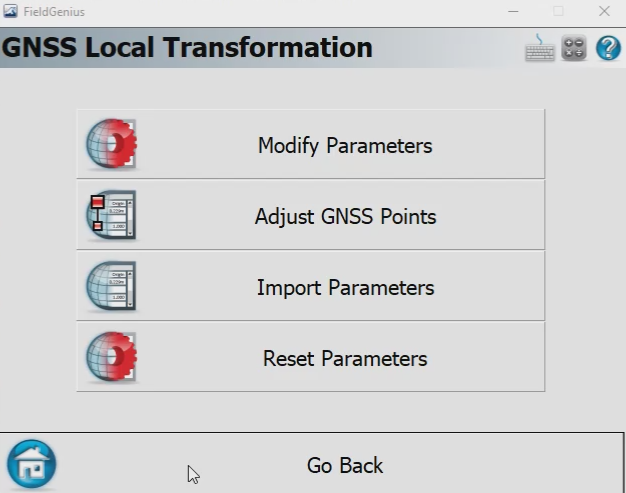 Step 9: After pressing OK, an “Adjust GNSS Points” option will appear on the GNSS Local Transformation menu. Click Adjust GNSS Points and then YES. This will update all currently stored points into the new Coordinate System.