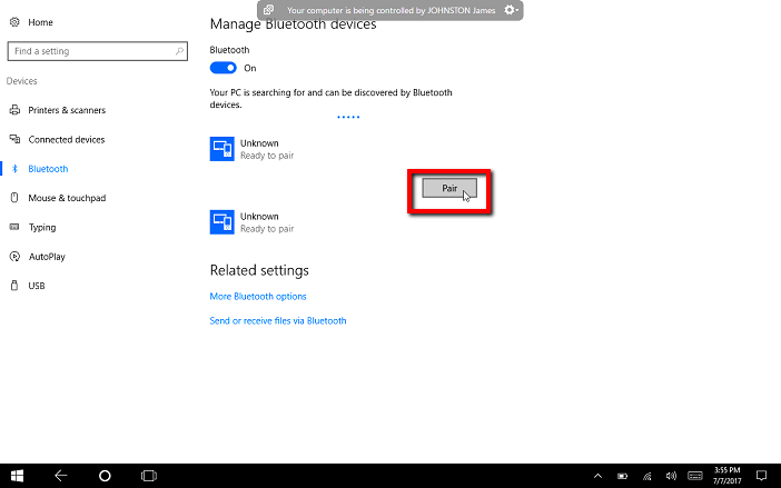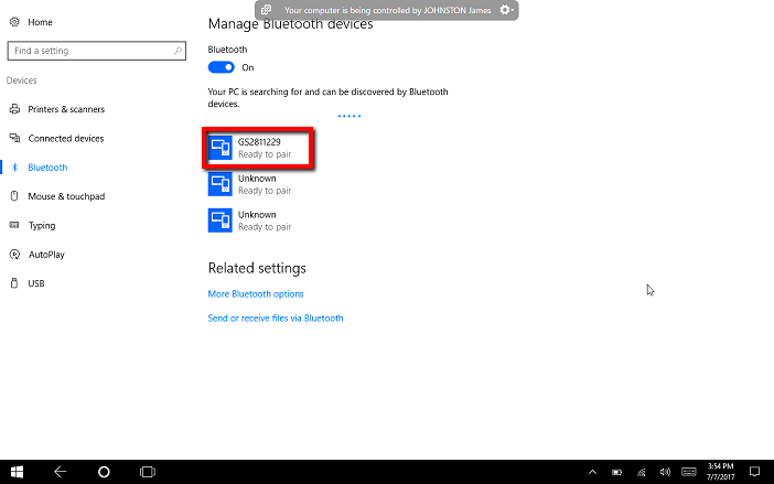 Part 1: Pair the GS14 using Windows Bluetooth Options: