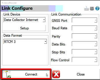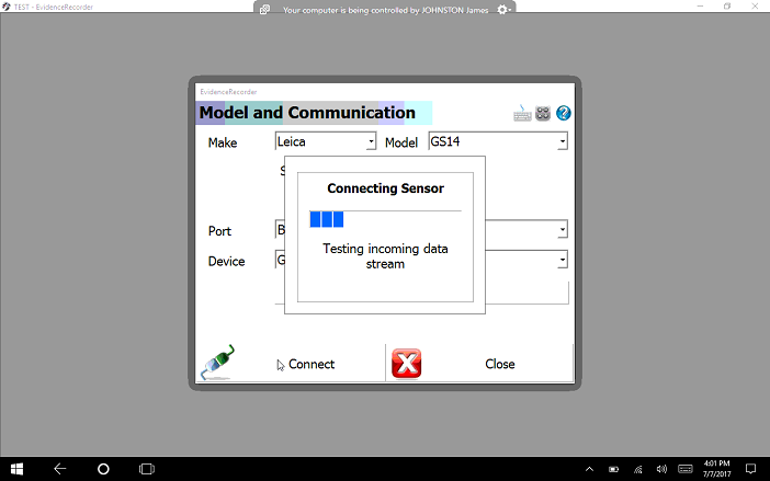 2) Choose Leica and GS14 and the Bluetooth Port (A search is required for the first connection but never again). Press Connect.
