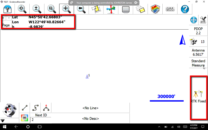 7) Wait for an RTK Fixed solution and look in the Observations toolbar for “live” lat/long values.