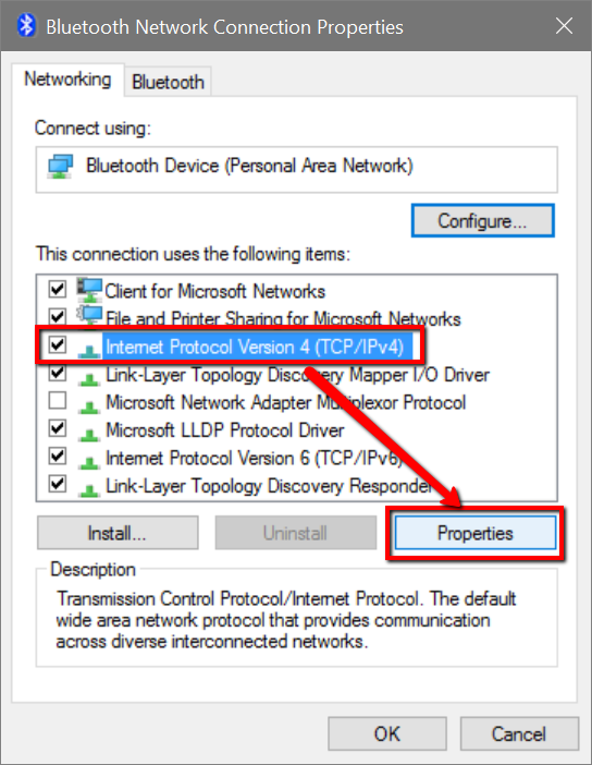 Step 10 - Select the Internet Protocol Version 4 (TCP/IPv4) then pick Properties.