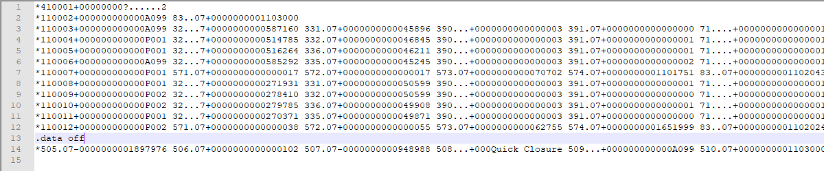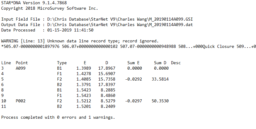 In this case, the STAR*DNA converter can handle the issue and the problematic section is ignored during the import. However, it is possible to change the gsi file so that the section is not read during the import. To do this, simply open the gsi file in notepad and add the .data off line above the problematic section. Below is an image of the resulted change: