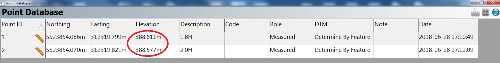 - Start by creating a new Project in FieldGenius and take two shots on the same elevation, but with noticeably different Antenna heights. (Make sure to change the Antenna height in FieldGenius as well!)