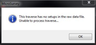 If you attempt to calculate a closure or compute a traverse that is missing the critical "Traverse" records for every setup you may see this message: