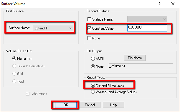 NOTE: If you follow the rule "New minus Old" when selecting your surfaces your fills will be reported as positive and cuts as negative.