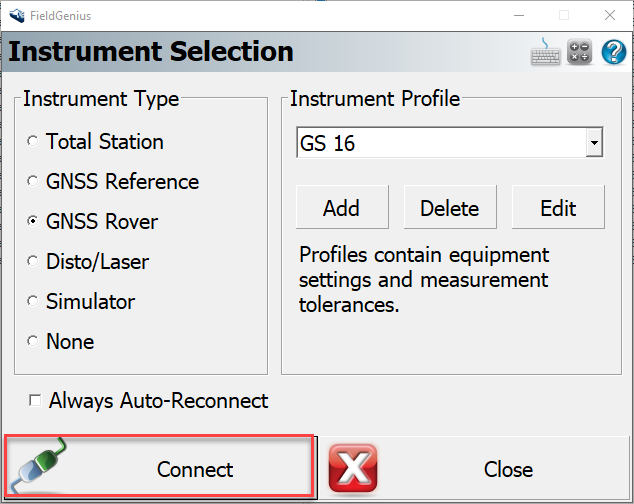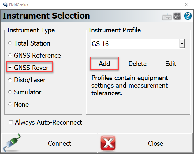 b) Add GNSS Rover and Name your instrument profile