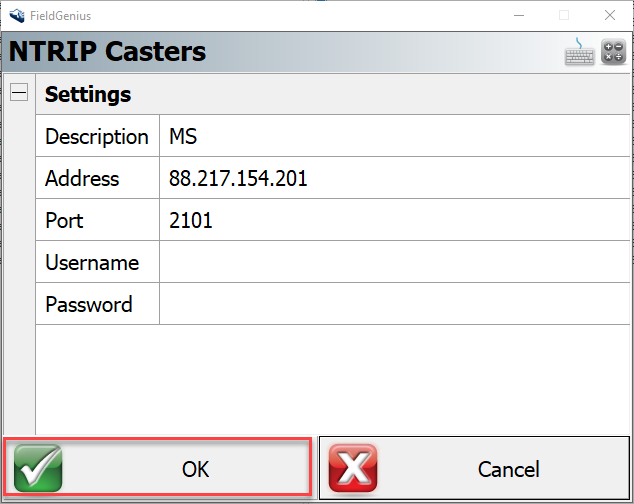 f) You should now see your caster information filled into the fields > Hit OK to connect