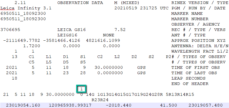However if the field crew is unfamiliar with the correct procedure, it is possible to trigger static logging using an incorrect procedure and the static data will be collected but incorrectly formatted for use with Leica Infinity. A user has shared a procedure with us that allowed them to correct the data and not have to re-do the fieldwork: