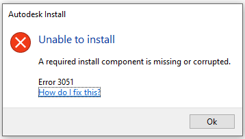 This error can be fixed by following the steps A-required-install-component-is-missing-or-corrupted to install the patch.