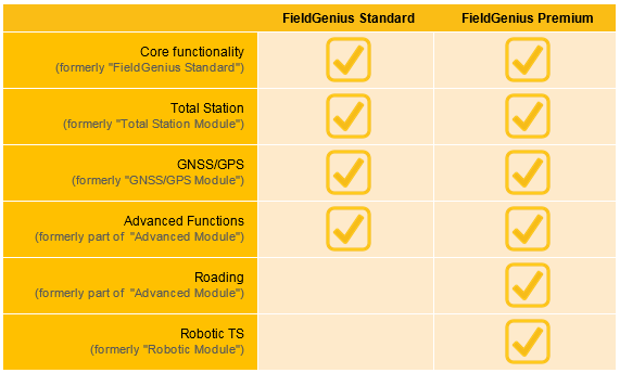 We have also simplified the product options for FieldGenius, offering the two most popular configurations as the "Standard" and "Premium" editions, respectively: