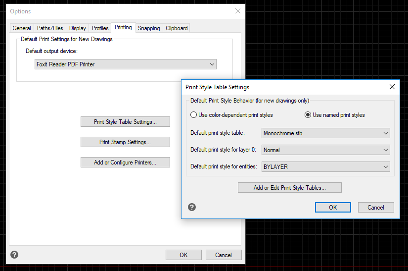 To see what the default setting for MSCAD or Map360 is, open Cad Tools | Options | and pick the Printing Tab. This will allow you to assign the Print Style Table assigned to new drawings: