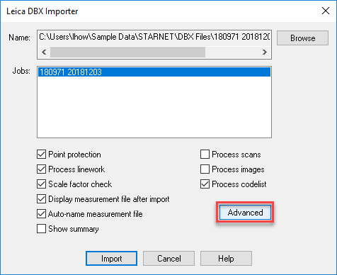 The error message that appears when trying to import: "This DBX project references geoid and/or CSCS file(s) that are not found. Use the Advanced button in the Leica DBX Importer dialog to browse to the folder(s) which contains these files(s)"