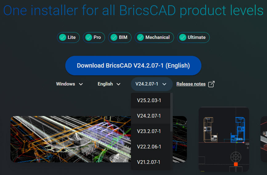 Need BricsCAD? Download any available language from the link below: