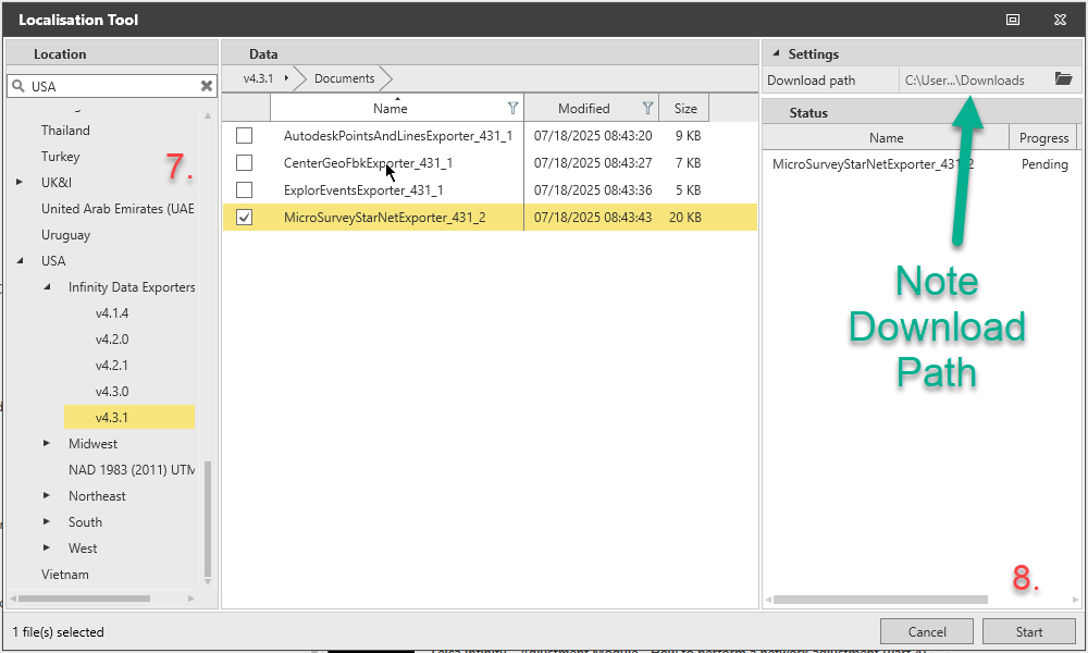 - Find the zip file "MicroSurveyStarNetExporter_431_2.zip" in the folder noted in step 9 above