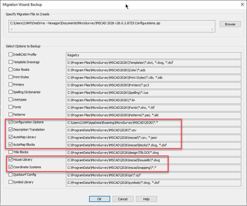 PLEASE NOTE: New functionality added in 2026 which stores a MicroSurvey Configuration as a *.msz file is accommodated in this migration process when transferring settings from 2024.