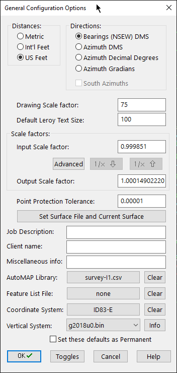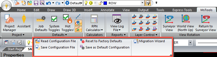 "General Configuration Options" or "MicroSurvey Job Defaults" in the MsTools Menu