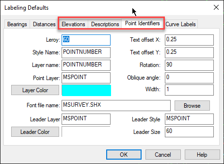 Update your drawing after changing these settings by opening MsPoints | Point Update.