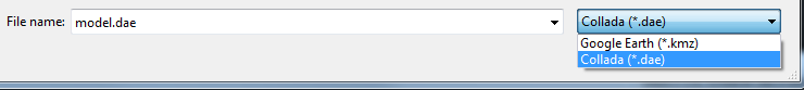 Important!! You can only select from: Google Earth .KMZ or Collada .DAE formats.