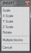 12.) When you import you will see this Insert screen below with Insert options on your Map360 drawing screen area with your symbol attached to the cross-hairs. Just click your mouse to insert symbol and the second click allows you to rotate. (Other options allow you scale if you need or for multiple blocks such as repeating a row of trees, etc.):