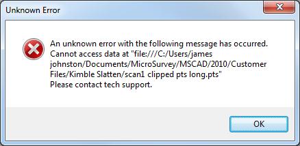 You may encounter this error message when importing a pts file into the PointCloud window or when running the PCI convertor.