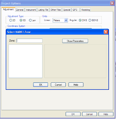 If you find when selecting the Project options/Adjustment tab in StarNet the Grid and Zone lists are blank (see below) it may indicate a problem with permissions or a corrupted installation on your computer. Please see below for steps to resolve this issue: