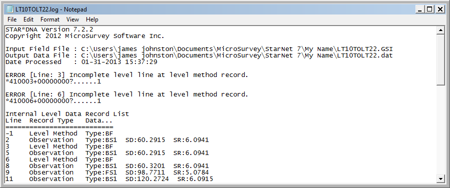 - Items are listed by Line Number in the log file. Windows Notepad does not display line numbers but there are many text editors that are free to download from the internet that will have extra features such as line numbers. These are valuable if you use STAR*NET.
